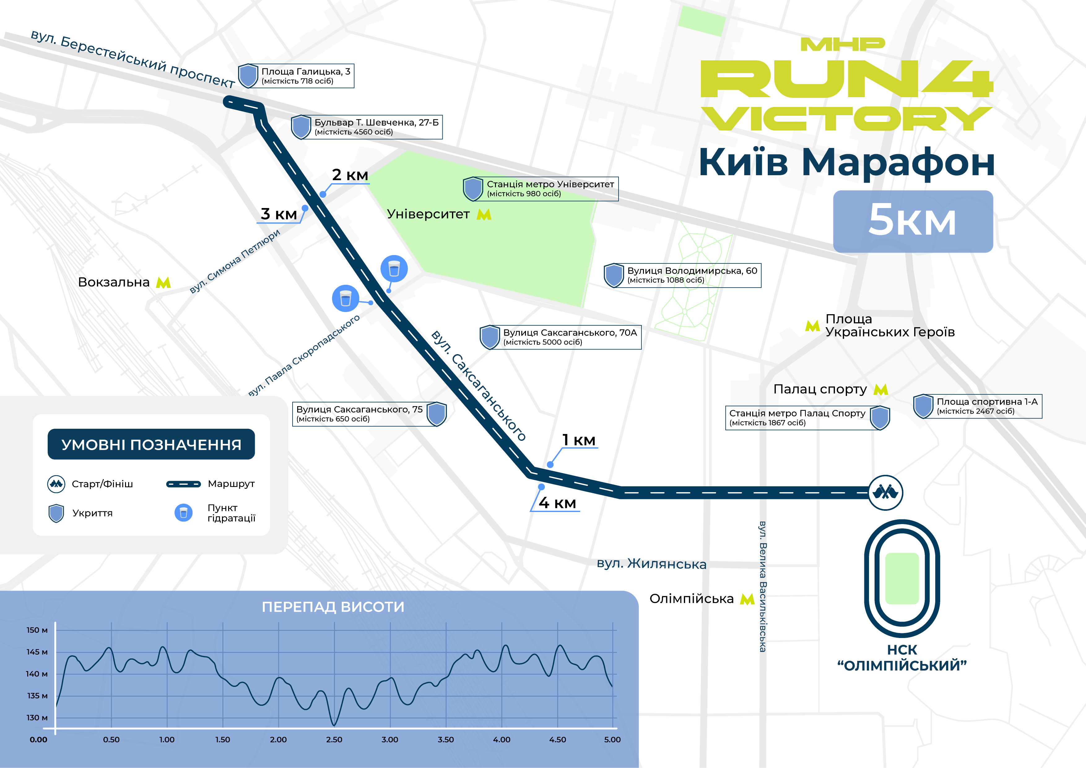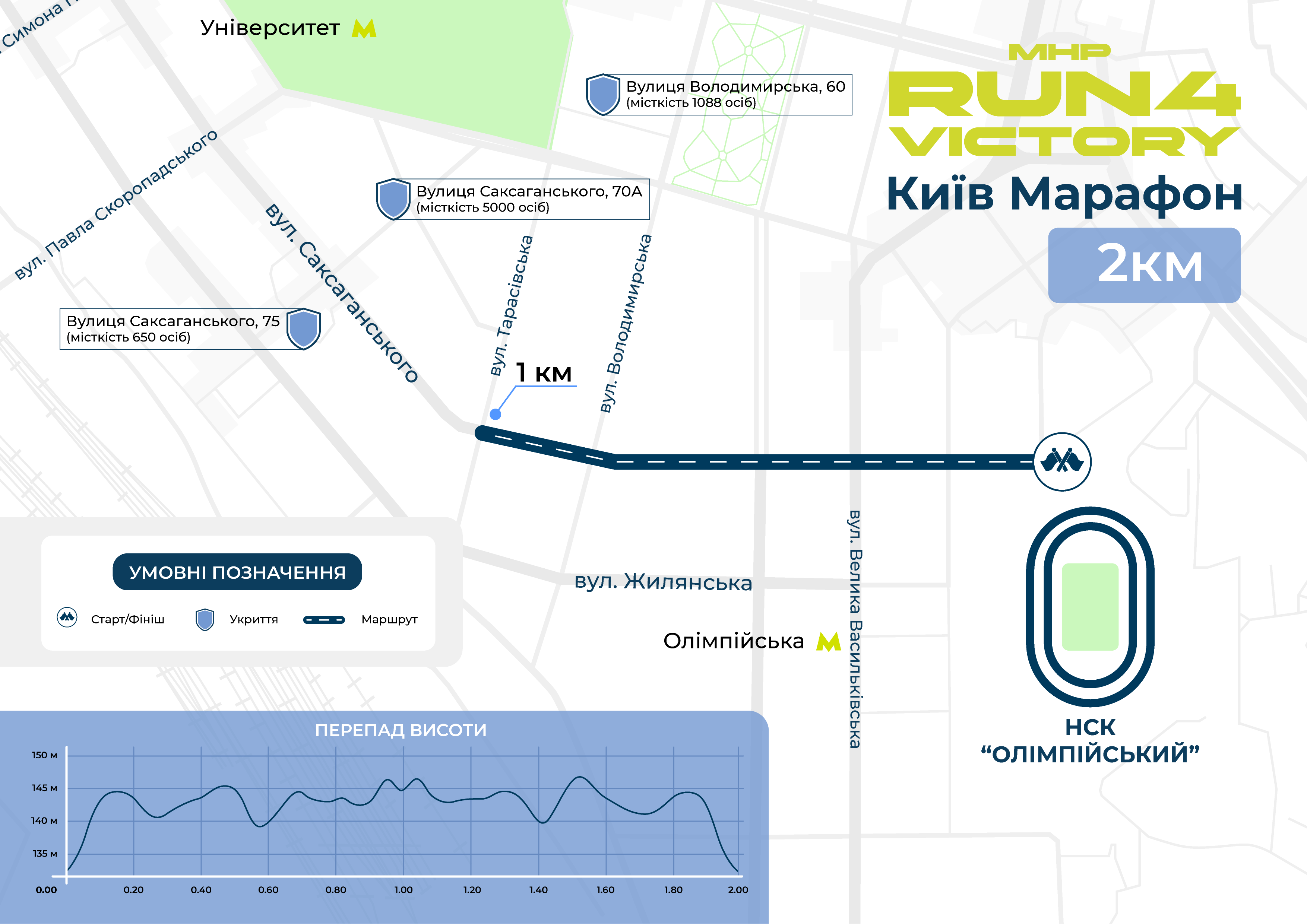 На дистанції працюватимуть пункти гідратації, а перепад висоти становитиме від 130 до 145 метрів.