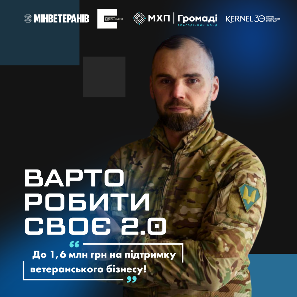 Ветерани, ветеранки, їхні родини та родини загиблих Захисників і Захисниць можуть взяти участь у грантовій програмі “Варто РОБИти СВОЄ 2.0” та отримати від 600 тисяч до 1,6 мільйона гривень на започаткування або масштабування свого бізнесу. Програму реалізує Український ветеранський фонд Мінветеранів у партнерстві з Благодійним фондом “МХП-Громаді” та агровиробничою компанією KERNEL.