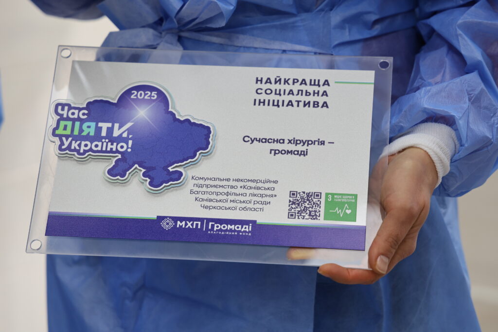 Одним із проєктів-переможців стало оновлення операційної в Канівській багатопрофільній лікарні. Завдяки грантовій підтримці та співфінансуванню з боку медзакладу тут придбали сучасне хірургічне обладнання — моторизований операційний стіл із набором спеціалізованих аксесуарів та підвісний операційний світильник. Загальна вартість проєкту перевищила 950 тис. грн, із яких 465 тис. грн — грантові кошти, ще 488 тис. грн — внесок самої лікарні.