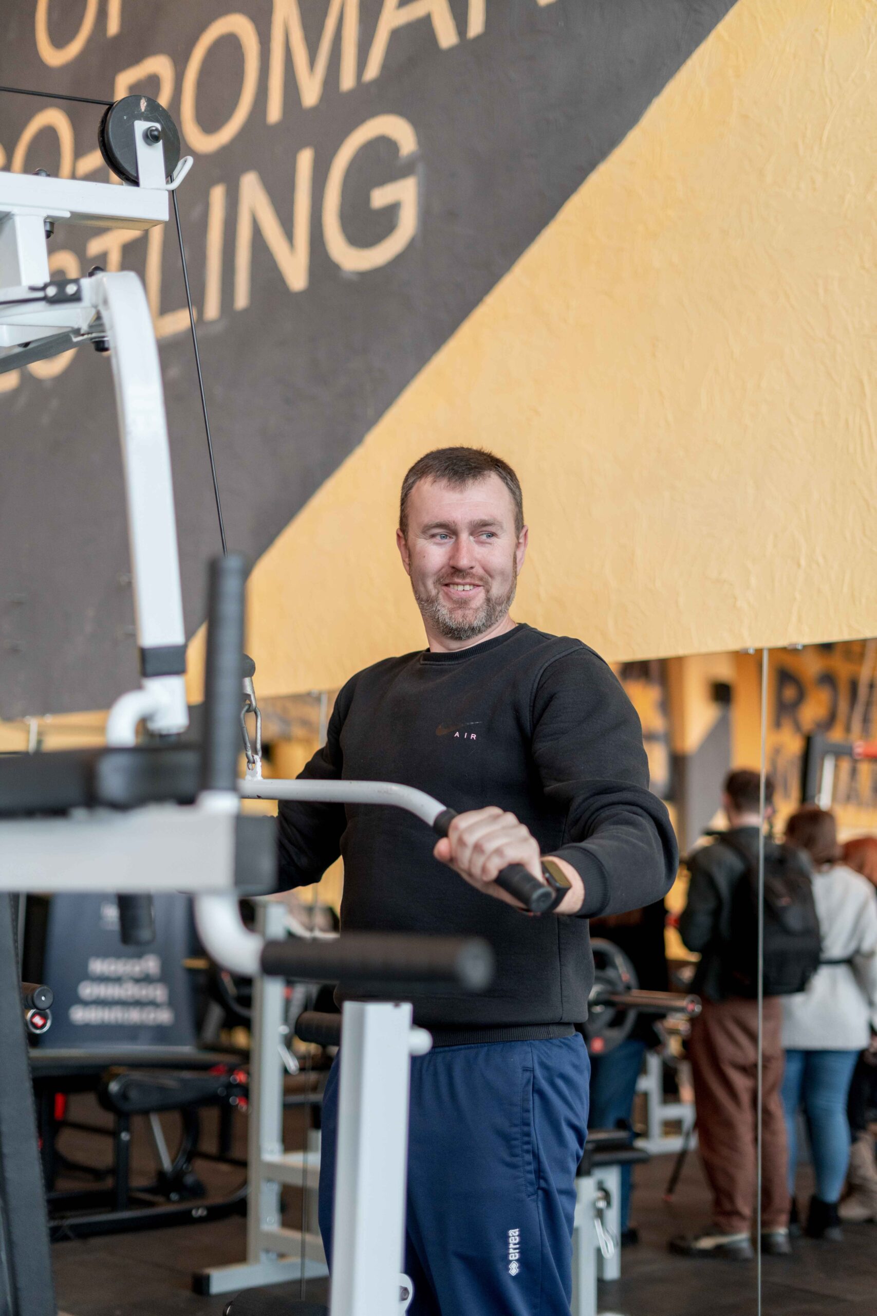 Займаюся на біговій доріжці, підіймаю гантелі, гирі та штанги. Після тренувань граю в дартс. Заняття допомагають підтримувати себе у формі, особливо після проблем з ногами та спиною через носіння бронежилета. Зараз я вже не уявляю день без тренувань. Тут можна отримати психологічне розвантаження та підтримати фізичну форму.