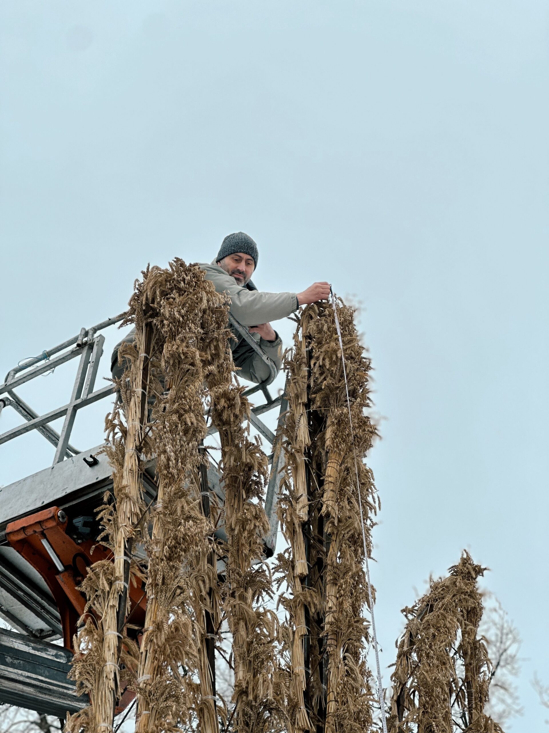 Пшеницю, яку використали для дідухів, зібрали на полях компанії МХП на Львівщині. Компанія, як стратегічний партнер благодійного фонду, вирішила підтримати ініціативу, оскільки крім важливої культурної складової створення дідуха має ще додаткову цінність – підтримку військових під час реабілітації.