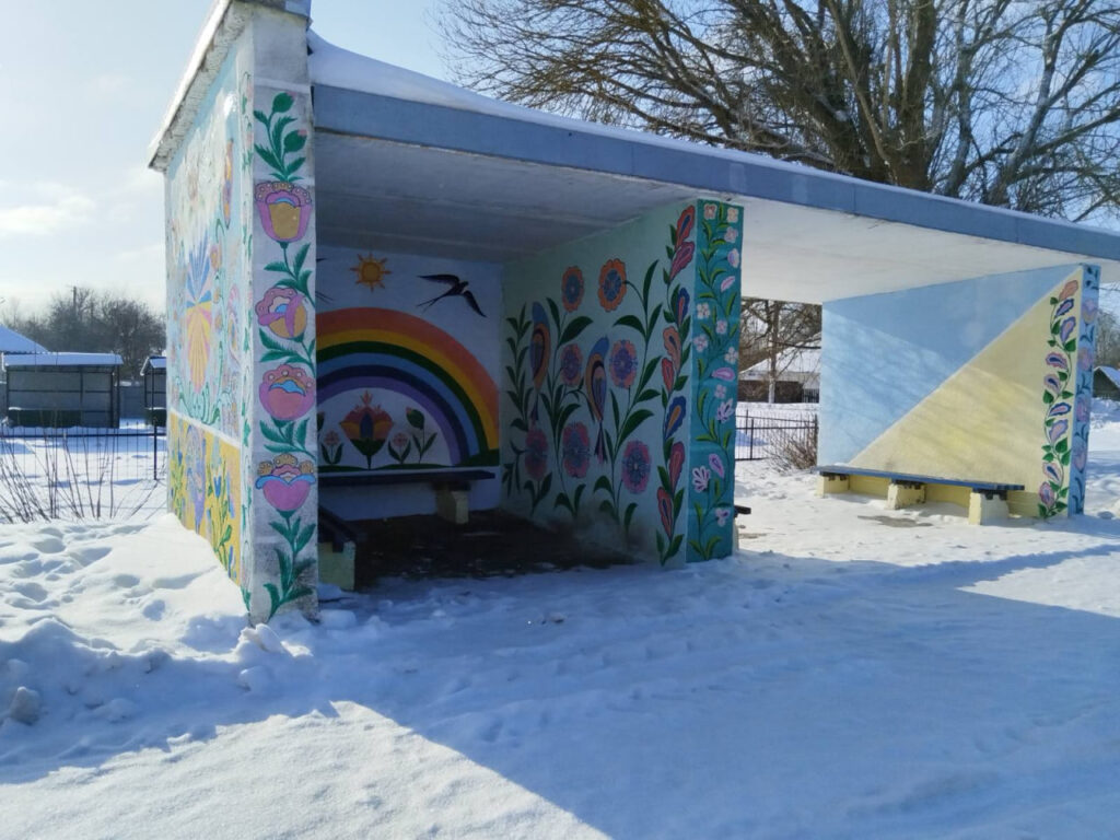 Vasyl Ivanovych lives in a village in the Kyiv region, where a museum dedicated to Maria Prymachenko once stood. On February 27, 2022, it was destroyed by Russian artillery. In response, he painted the entire village in the artist’s recognizable style — schools, houses, and bus stops. Today, his own works are featured in exhibitions.