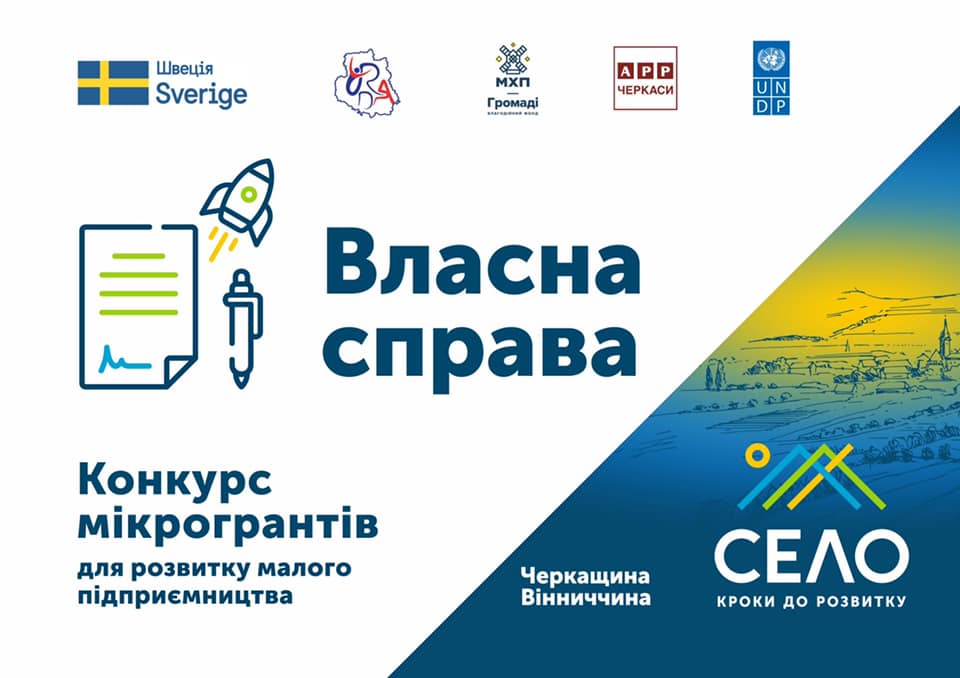 У межах проєкту було оголошено конкурс мікрогрантів «Село. Кроки до розвитку», який передбачав навчання для підприємців-початківців із сільських населених пунктів Вінниччини та Черкащини. Таким чином, понад 100 осіб пройшли безкоштовне навчання з написання бізнес-планів та поліпшили свої знання з ведення бізнесу. У результаті конкурсна комісія обрала 24 проєкти-переможці, які отримали фінансування в розмірі до 50 тис. грн.